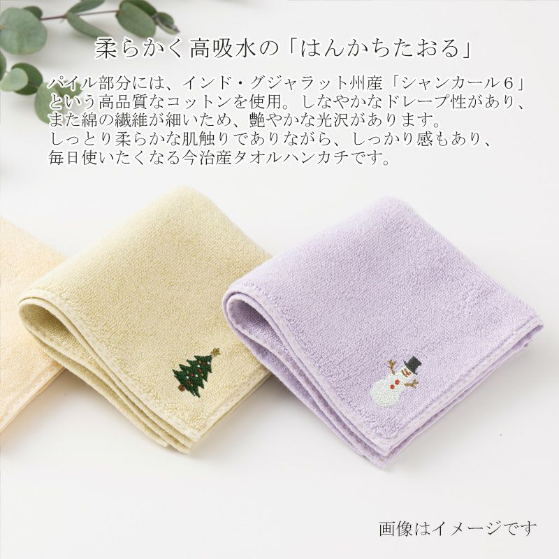 「今治謹製 ご褒美タオル」のバスタオル・フェイスタオルと、クリスマスツリーの刺繍入り「今治謹製 はんかちたおる」のセットです。