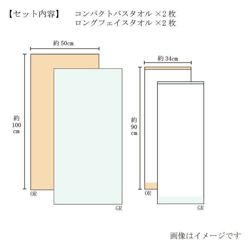 ロングフェイスタオル・コンパクトバスタオルを各2枚お詰めしたタオルギフトです。さまざまな用途にお贈りいただける穏やかな色合いの今治タオルはご夫婦でお使いいただくなど、人気の組み合わせの贈り物です。