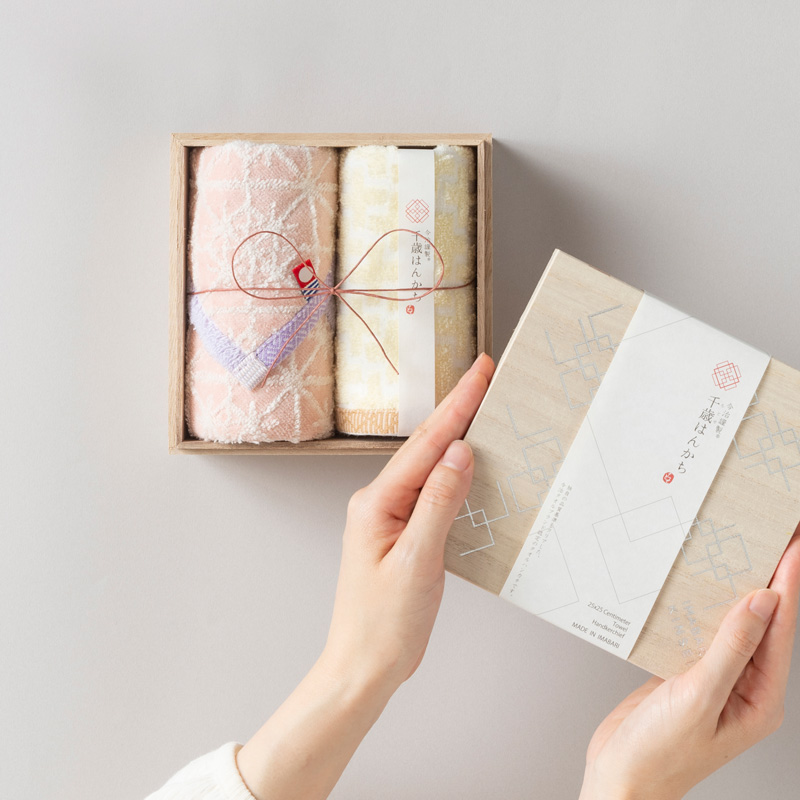 今治謹製 千歳はんかち 木箱入り タオルハンカチ2枚セット HK2017 ピンク