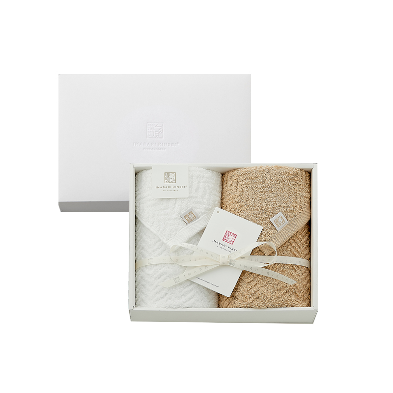 今治謹製 Daily Comfort (デイリーコンフォート)紙箱入りフェイスタオル 2枚セット DC1723 ホワイト・ベージュ(今治製)