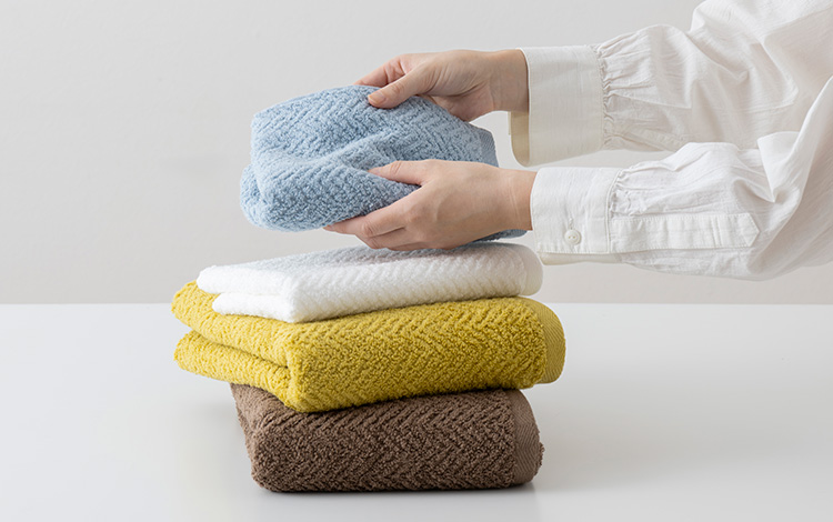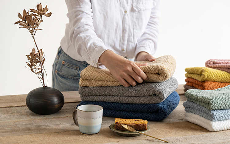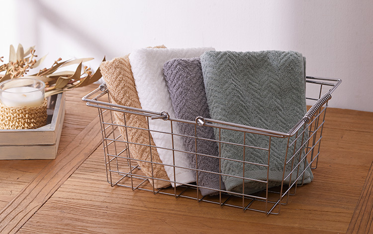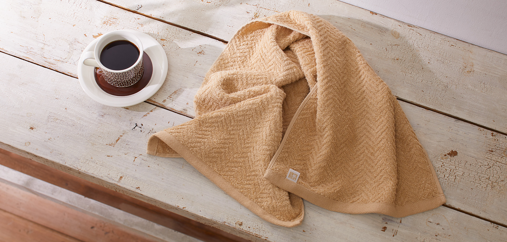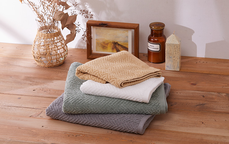 「シック」、「シンプル」、「モダン」、「北欧風」など、さまざまなスタイルの空間に馴染むヘリンボーン。時代やトレンドに左右されない長く愛用できる今治タオルです。