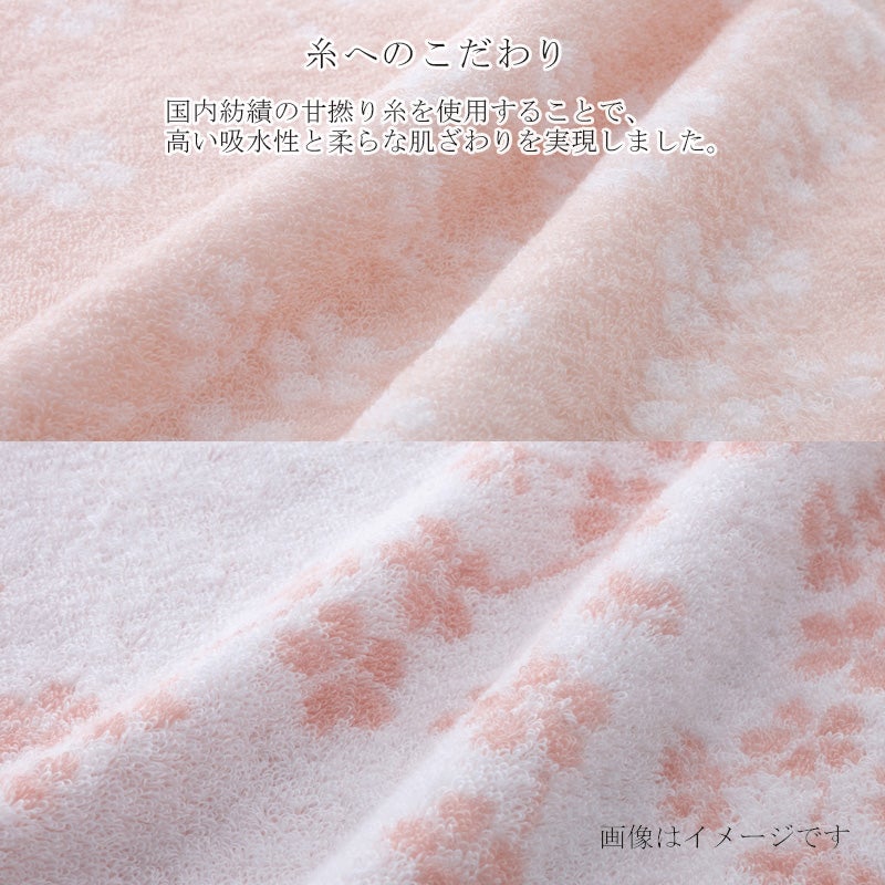 今治が誇る複雑な織柄を表現できるジャガード織の技術を駆使することで、桜の花を繊細に織り上げることが出来ました。