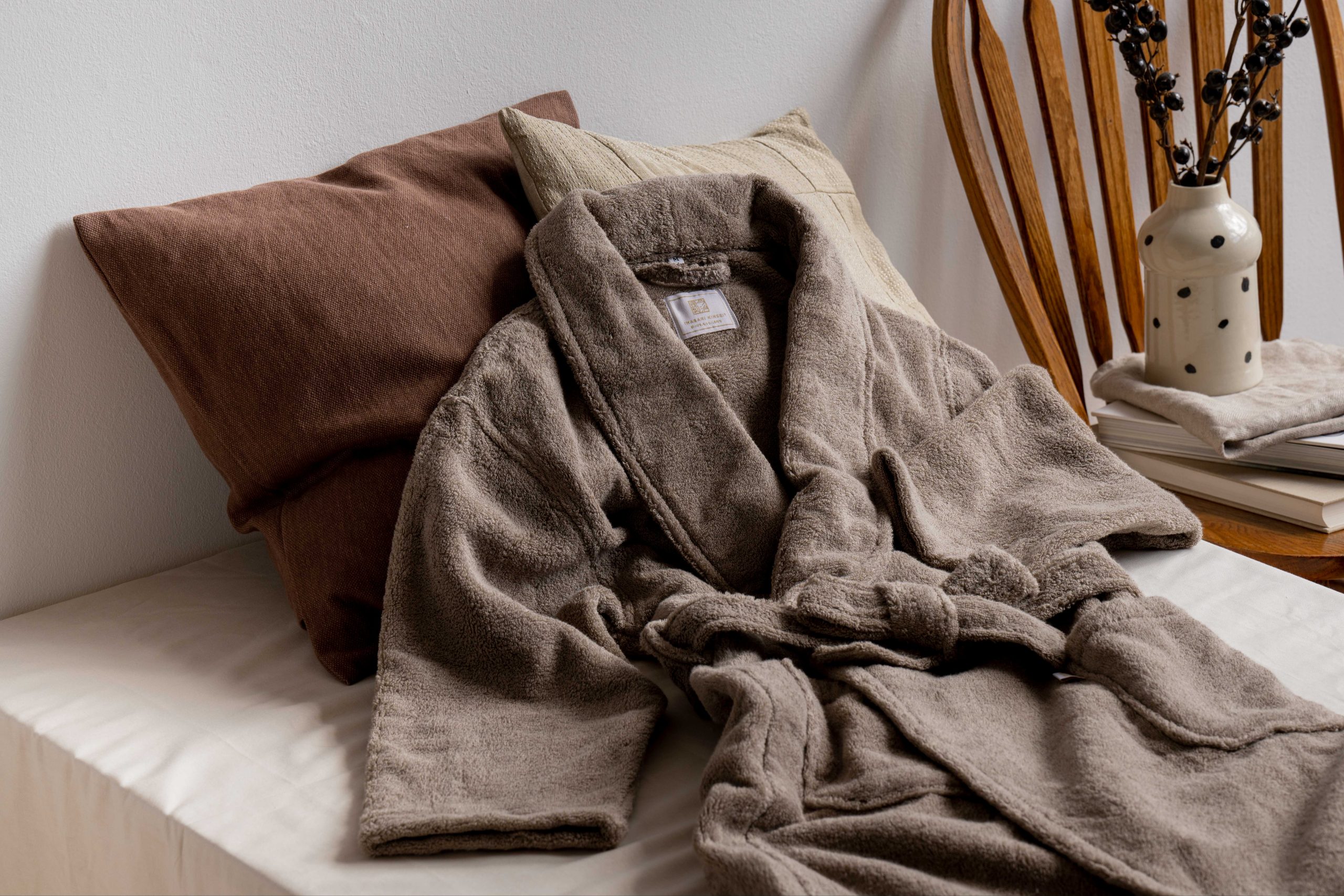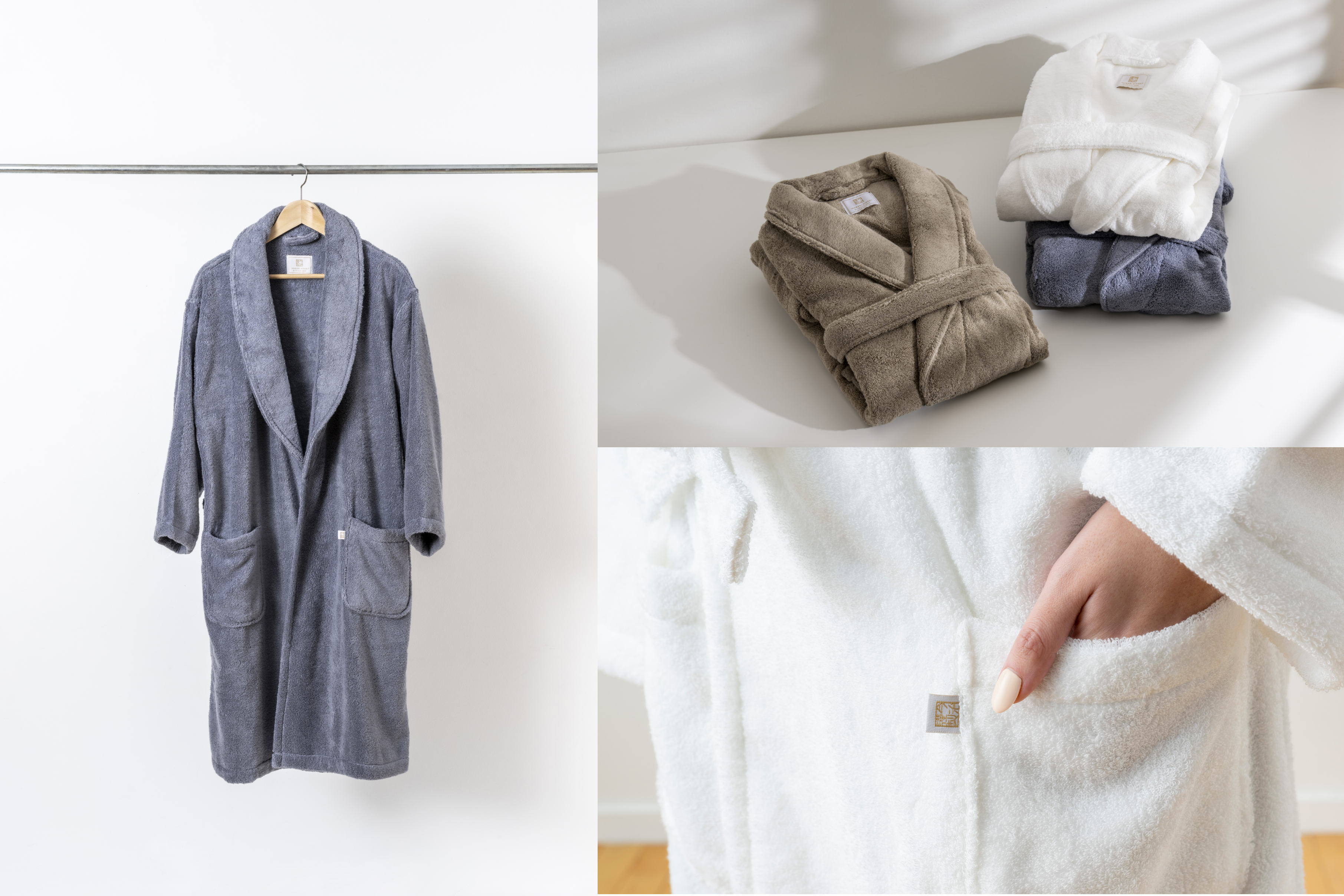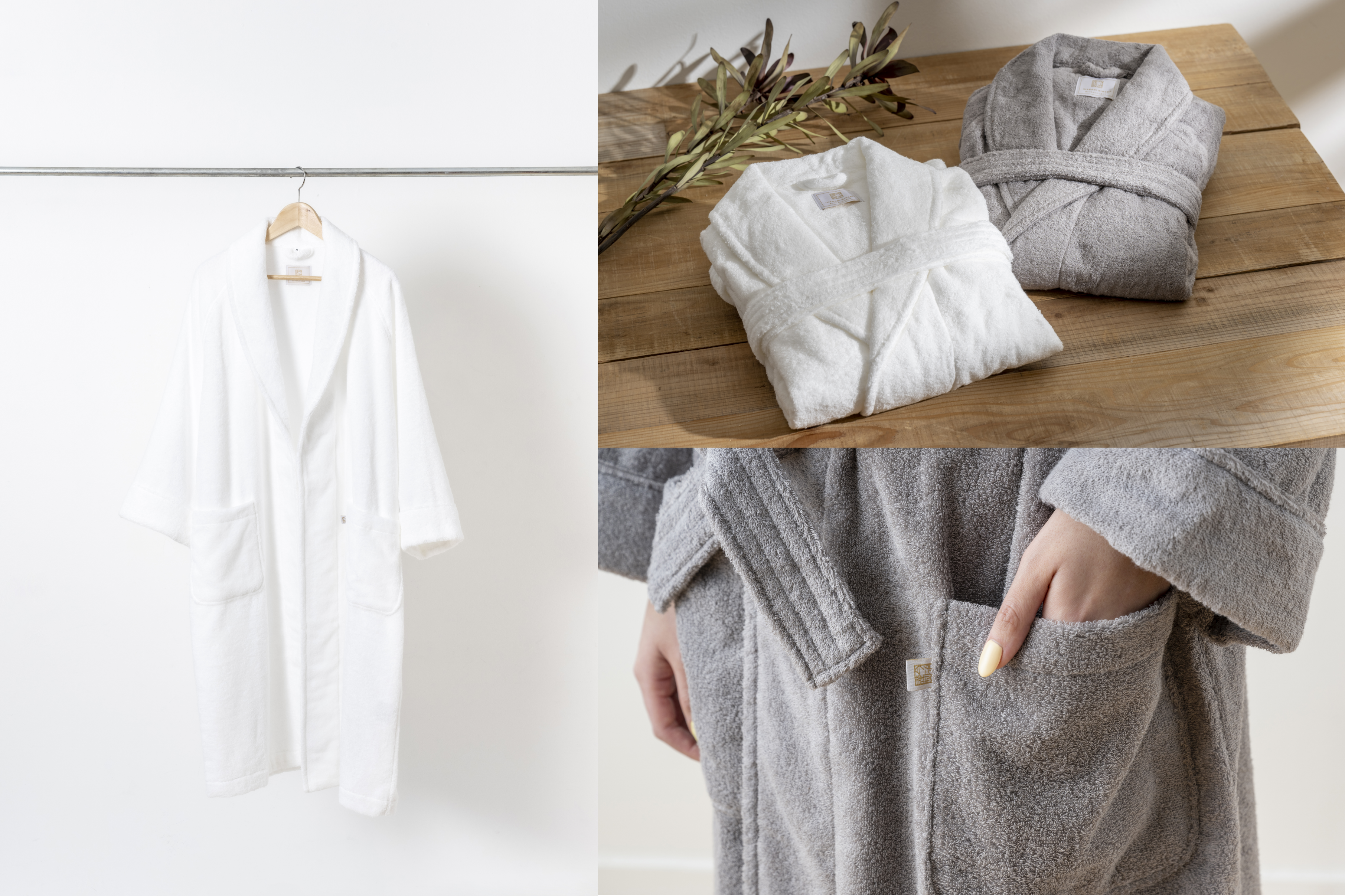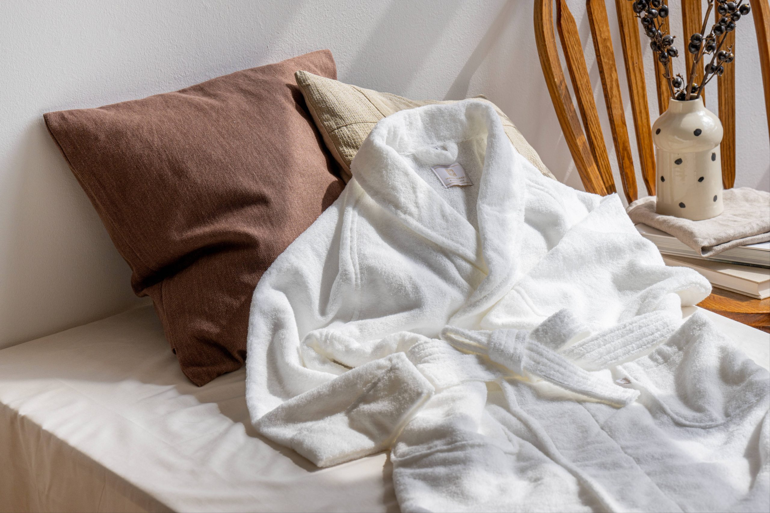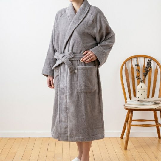 寒い季節には、お風呂上がりのポカポカした身体を包み込むバスローブは、保温効果に優れ、心地よいひとときを演出します。特にタオル地のバスローブは水滴や汗をしっかり吸い取りながら、湯冷めを防ぎます。羽織ることで、肌に必要な水分の蒸発を防ぎ、乾燥を防ぐ保湿効果も。