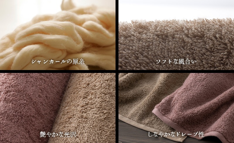 一般的なタオルと比べてパイル(ループ状の部分)の数が多い規格で、さらにパイルを長くすることにより、使用した時に肌触りのよい仕上がりになります。
