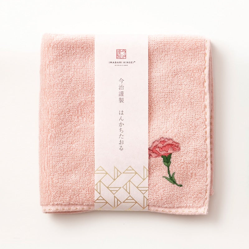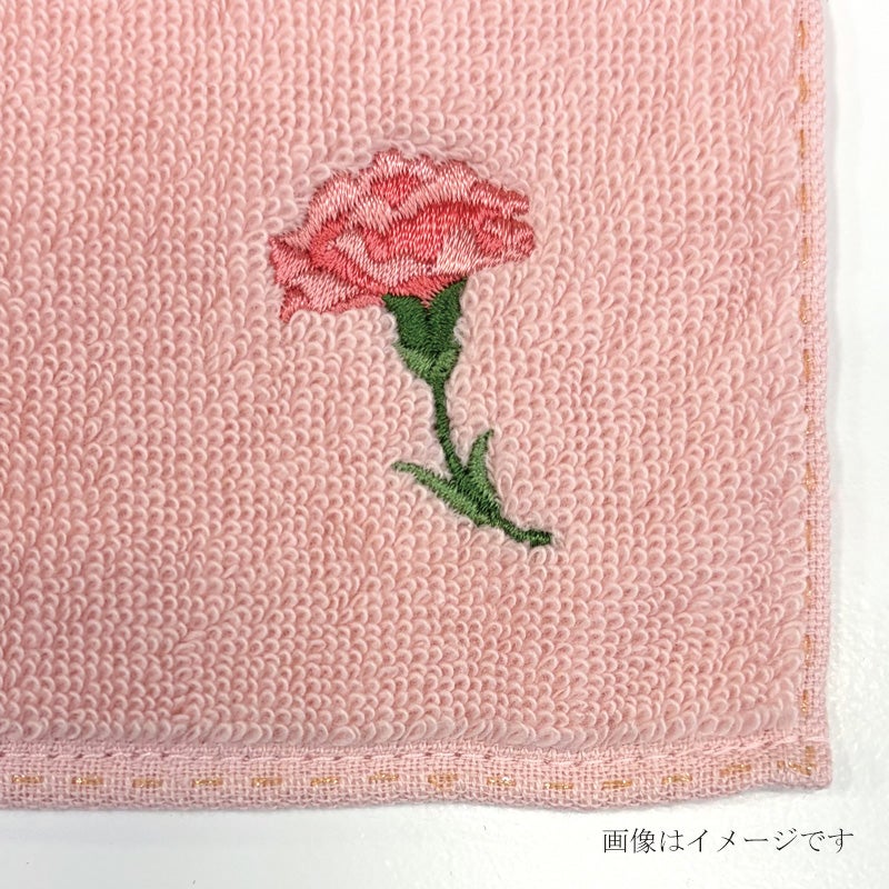 高吸水でやわらかな肌触りの 「今治謹製 はんかちたおる」に、 カーネーションの花を刺繍しました。