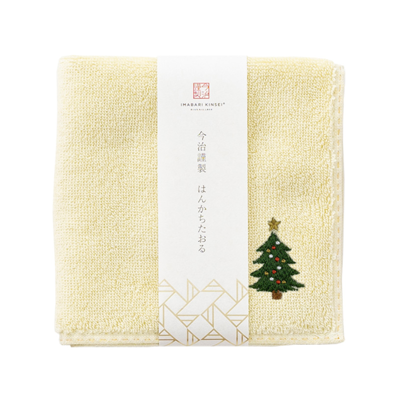高吸水でやわらかな肌触りの 「今治謹製 はんかちたおる」に、 クリスマスツリーとスノーマンのかわいらしいモチーフを刺繍しました。