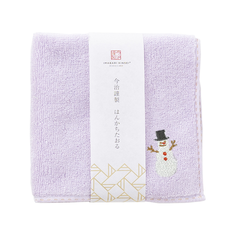 今治謹製 はんかちたおる スノーマンの刺繍入り(パープル) 約25×25㎝ TIHT131