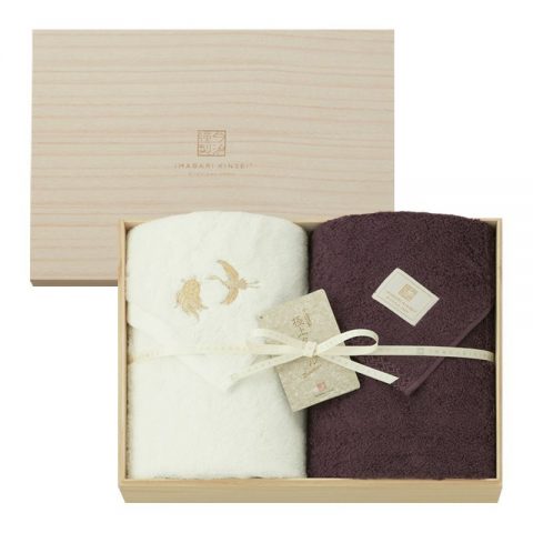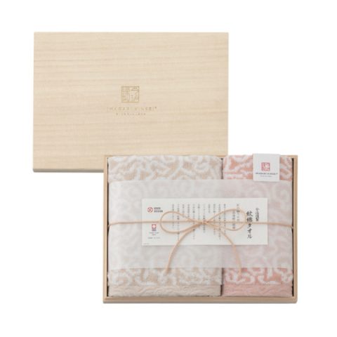 今治謹製 紋織タオル 木箱入り フェイスタオル1枚・ウォッシュタオル1枚セット IM7715