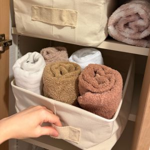 このたたみ方なら、タオルを重ねても形が崩れにくく、見た目もすっきり。