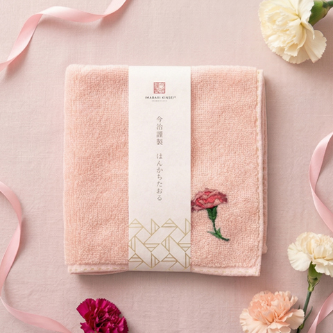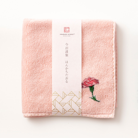 今治謹製 はんかちたおる カーネーションの刺繍入り