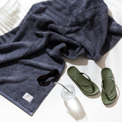 全身を包み込めるほどのサイズです。お風呂上りやシャワーを浴びた後、全身の水分を取るために使われます。