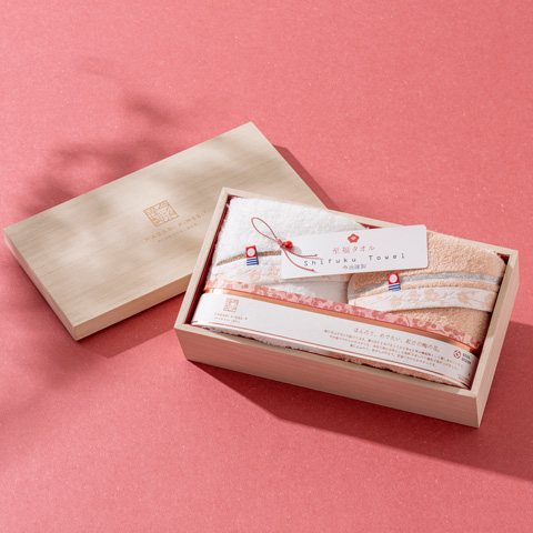 今治産の柔らかなタオルを、本物の梅から抽出した染料でほんのり梅色に染め上げた「至福タオル 梅染め」は、まさにお年賀のご挨拶ギフトにぴったりです。