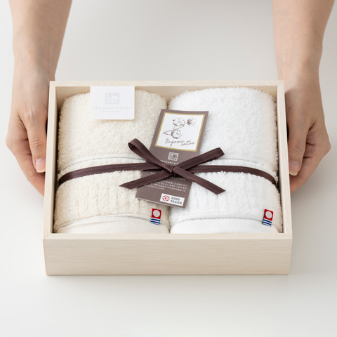パイル部分にオーガニックコットンを使用した、オーガニックタオルは、柔らかな風合いが心地よい今治タオルの贈り物。