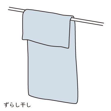 バスタオルやシーツなどの大きなものを竿に干す場合は、裾をそろえずに干す「ずらし干し」がおすすめ。